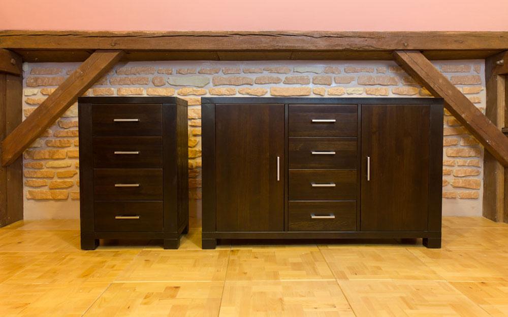 Nowoczesna komoda to doskonałe uzupełnienie salonu lub sypialni. Pojemne szuflady zapewniają dużo miejsca do przechowywania.
