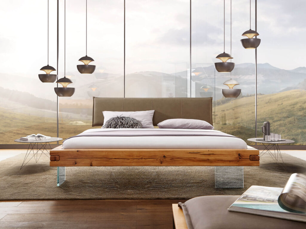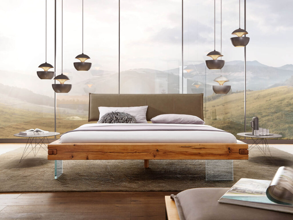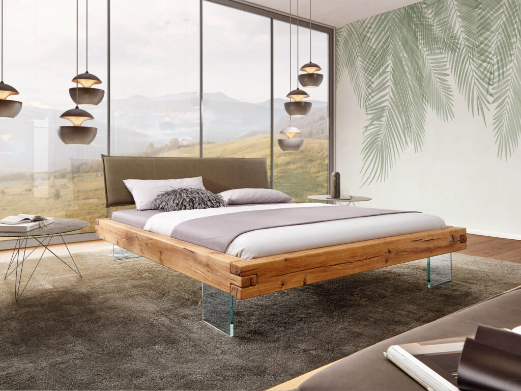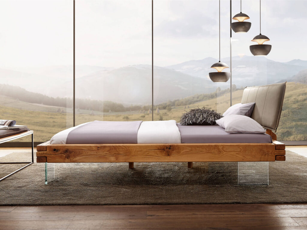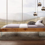 Nowy wymiar łóżka lewitującego. BE-0575 wersja z dzikiego dębu oraz bukowa. Masywna konstrukcja belek 16x9cm. Dostępne rozmiary 140, 160, 180, 200x200cm. Opcjonalna szafka nocna – wolnostojąca.