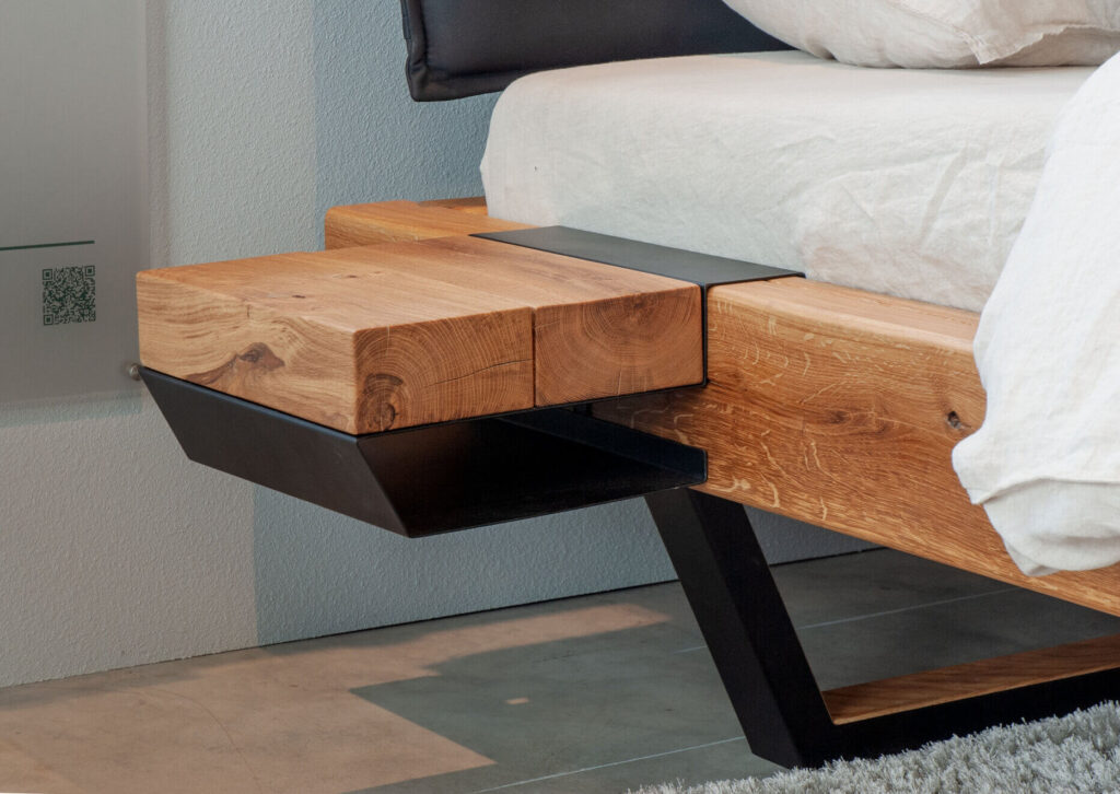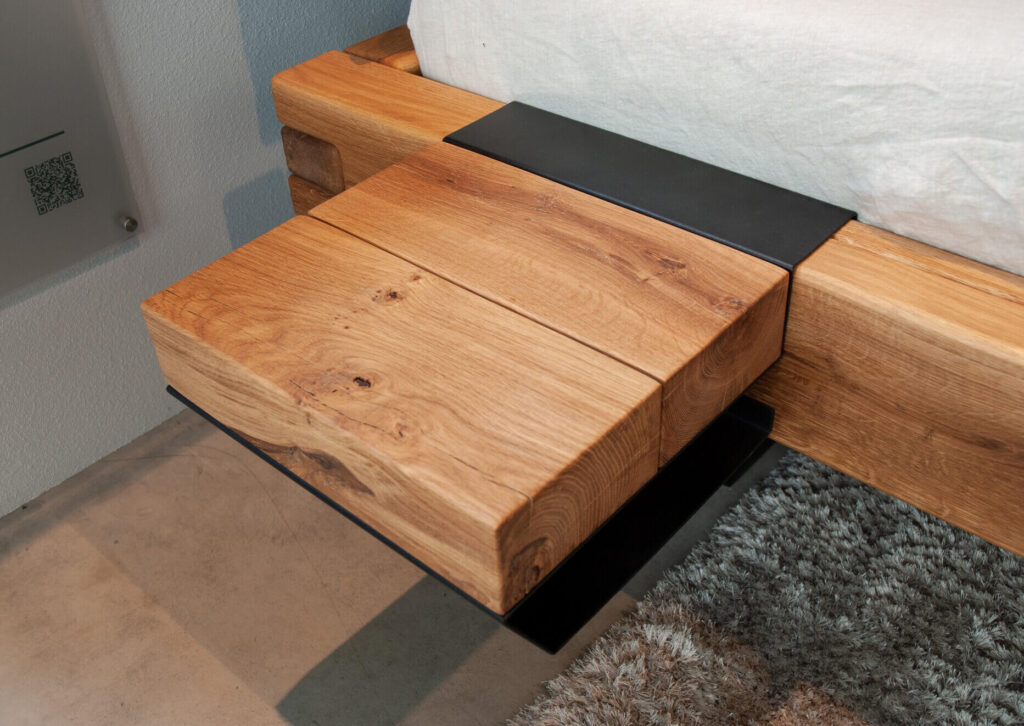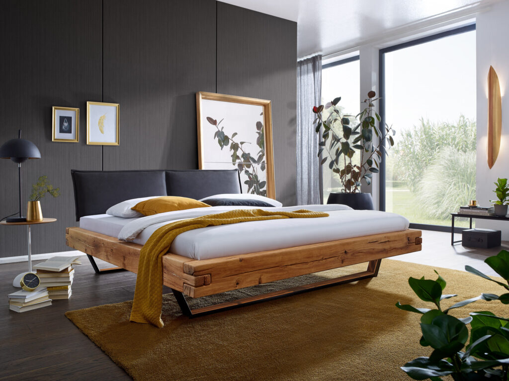 Łóżko BE-0583 dzikiego dębu. Masywna konstrukcja belek 16x9cm. Dostępne rozmiary 140, 160, 180, 200x200cm.