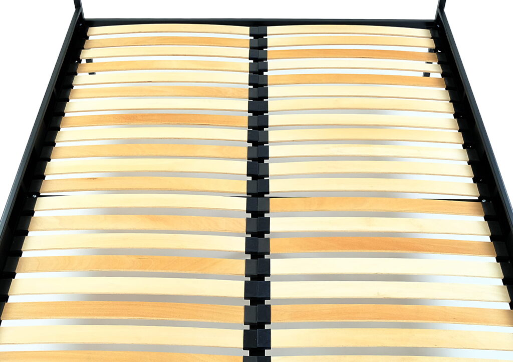 Stelaż do łóżek do 120 cm szerokości składa się z 24 listewek. Natomiast dla łóżek powyżej 120 cm szerokości – z 48 listewek. Do naszych łóżek rekomendujemy używanie oferowanych przez nas stelaży.
