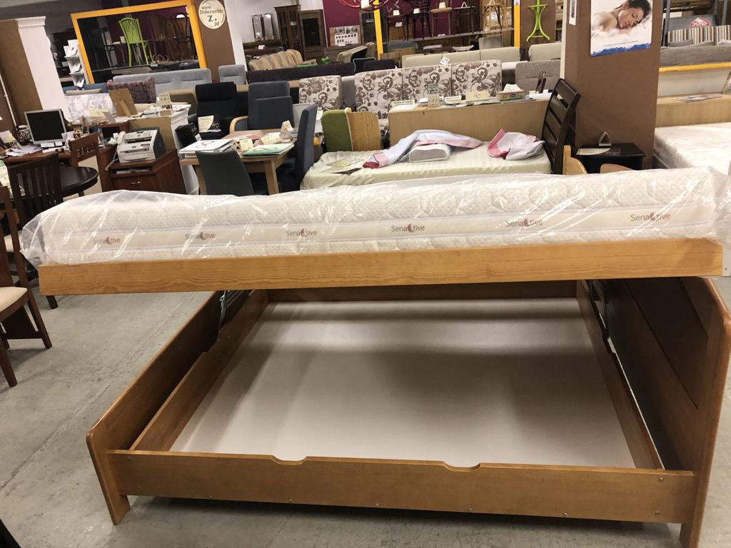 Przedstawiamy Państwu łóżko podnoszone bokiem. Łóżko wykonane w całości z drewna sosnowego w kolorze olcha. Jesteśmy sklepem ,który specjalizuje się w produkcji i sprzedaży łóżek z drewna pod zamówienia i projekty klienta. Jest to pełne drewno bezsęczne .Stelaż jest także przemalowany aby nie doszło do zniszczenia pokrowca od materaca. Zamiast tego stelaża wykonanego z drewna możemy zainstalować stelaż metalowy jak przy naszych łózkach tapicerowanych . Będzie on mógł mieć podnoszenie także z boku oraz od nóg. Proszę zwrócić uwagę ,że pomimo podnoszenia bocznego to skrzynia od łóżka znajduje się nad podłogą. Te i inne rzeczy są do uzgodnienia przez Państwa . Można to zrobić przez nasz formularz zamówień lub telefonicznie 503154759 lub drogą mailową ; sklep@dobremeblez.pl . Czekamy na Państwa projekty i inspiracje. Jesteśmy także wyprodukować łózko i materac o nietypowych wymiarach jak np ; 185 x 78 czy 125 x 220 lub według Państwa projektu.