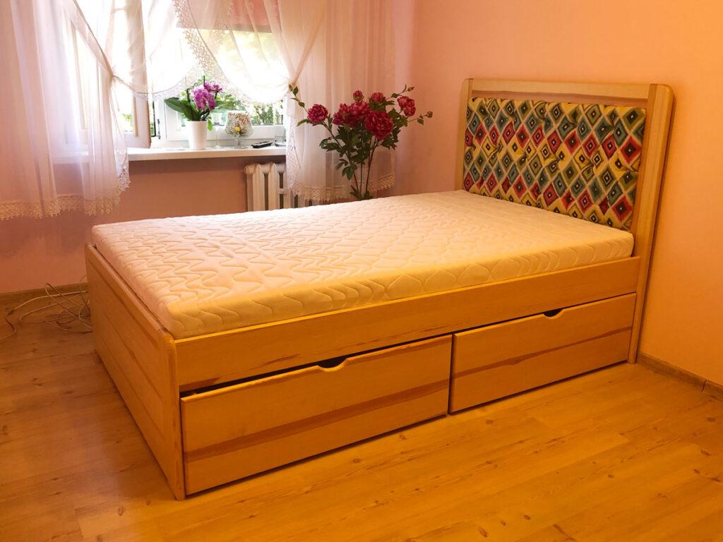Łóżko z drewna z tkaniną