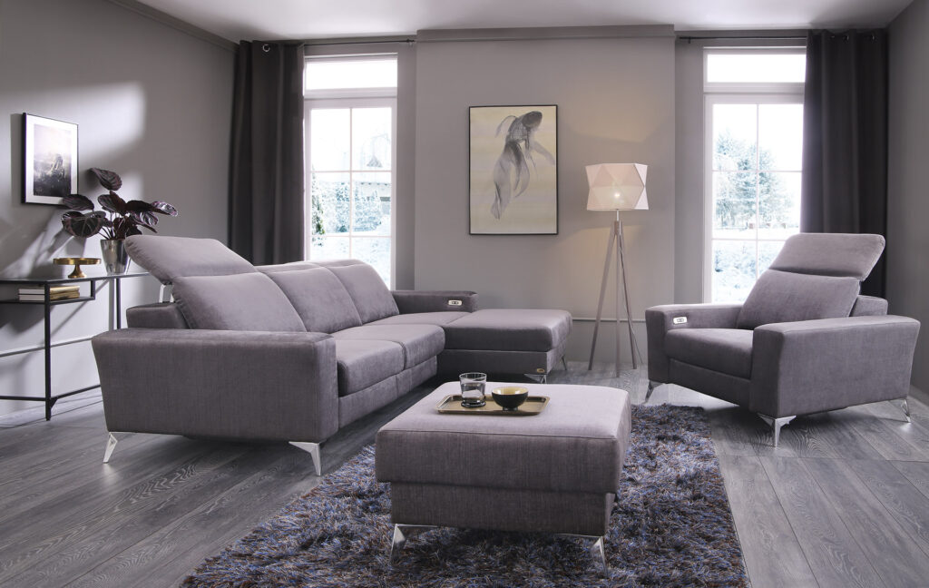 Narożnik Diverso. Nowoczesna forma narożnika i na dodatek rozbudowana o fotele i sofę . W ofercie do uzgodnienia trzy rodzaje nóżek ; wąskie drewniane , szerokie drewniane i widoczne na zdjęciu . Narożnik dostępny także w wersji XL . Siedzenie miękkie dzięki zainstalowaniu sprężyny falistej i pianki typu HR. Kolory tkanin jak zawsze do uzgodnienia . W obecnej chwili króluje popiel i szarość ale jak zawsze kolor tapicerki to rzecz bardzo indywidualna. Wysyłamy próbki tkanin do domu Państwa w celu podjęcia dobrej decyzji … co do koloru tkanin.