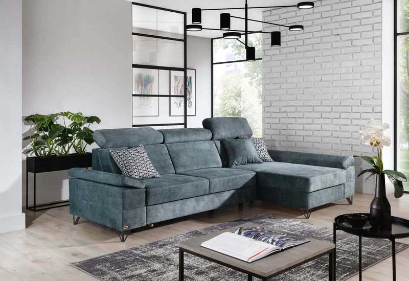 Narożnik Lazaro. Jeden z najnowszych narożników z firmy Unimebel. Narożnik typowo ze spaniem okazjonalnym . Przy zamówieniu muszą Państwo określić z której strony ma być pojemnik na pościel . Na zdjęciu typowy narożnik tzw; prawy . Zagłówki ruchome oraz także ruchome są boczne elementy .Oprócz bogatej oferty tkanin obiciowych mają Państwo do wyboru dwa kolory nóżek metalowych ; czarne lub srebrne. Cena jak zawsze uzależniona od tkaniny obiciowej . Przy mały dzieciach oraz paru zwierzakach typu miał , miał czy hał , hał znajdziemy takie tkaniny . Może to być katalog Rustica . Jest to typowa tkanina przeznaczona dla zwierząt. Bardzo , gruby zwięzły splot. Gdyby w tym katalogu nic Państwa nie zachwyciło to proponujemy dla odmiany tkaninę włoską z Italsenso katalog Persempra 1 .