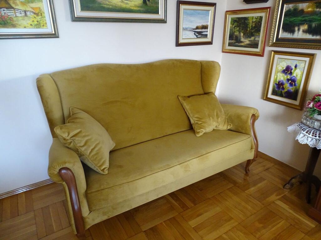 Sofa Noble. Typowy model sofy do wygodna siedzenia. Nie zawsze każdemu z nas może pasować wizualna forma tego mebla ale komfort siedzenia jest ważny. Poprzez zainstalowanie sprężyny falistej i pianki mamy w miarę miękkie siedzenie. Z tej kolekcji mebli tapicerowanych możemy domówić jeszcze pufę i fotel. Tkaniny jak zawsze do uzgodnienia i kolory drewna według gustu klienta. Stelaż drewniany zapewni odpowiednią trwałość mebla a dobrze dobrana tkanina obiciowa zapewni bezpieczeństwo przed plamami. Zestaw ten ładnie prezentuje się w takich tkaninach jak na zdjęciu ale jak zawsze to kwestia gustu. Akurat o nim nie będziemy dyskutować bo każdemu z nas podoba się coś innego. Czasami klientowi pasuje do wnętrza tkanina w podobnych wzorach jak na zdjęciu i powie ,że pomimo tego iż nie jest to tkanina plamoodporna to jak coś się wylej to nie będzie widać, bo tkanina ma wzory. Po części ma rację .Tylko pytanie co się wyleje ; czerwone wino czy herbata ???. Natomiast większość tkanin jednolitych w naszej ofercie sklepu Dobre meble z … i niekoniecznie będą to tkaniny obiciowe z zamazami posiadają system zabezpieczający przed zabrudzeniami jak Zero Spot czy aquaclean. Zobacz pozostałe modele sofek bez funkcji spania.