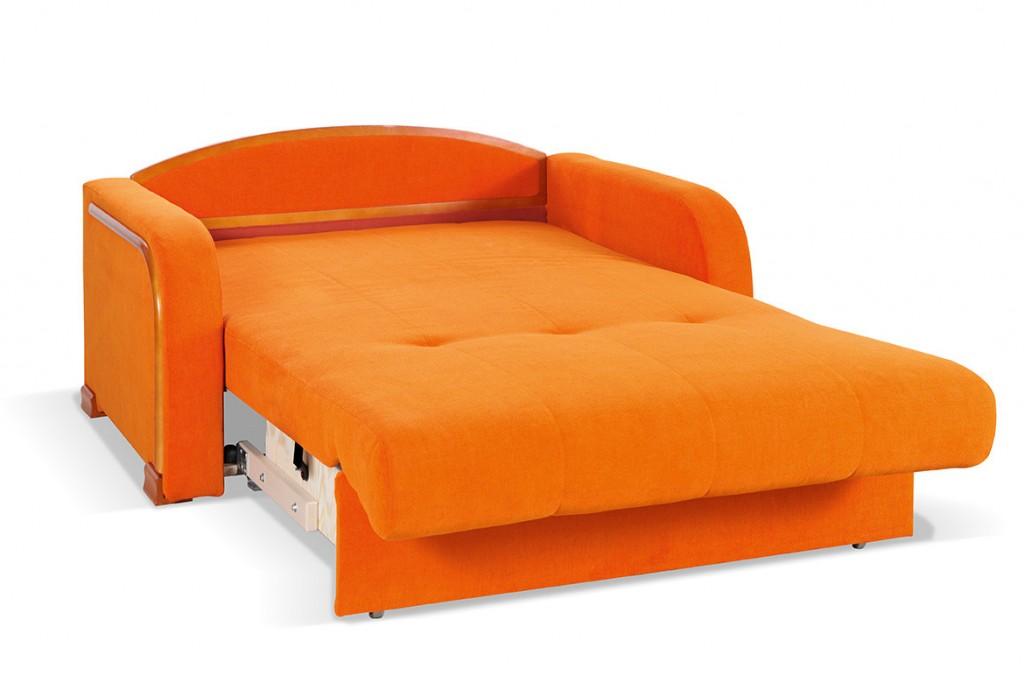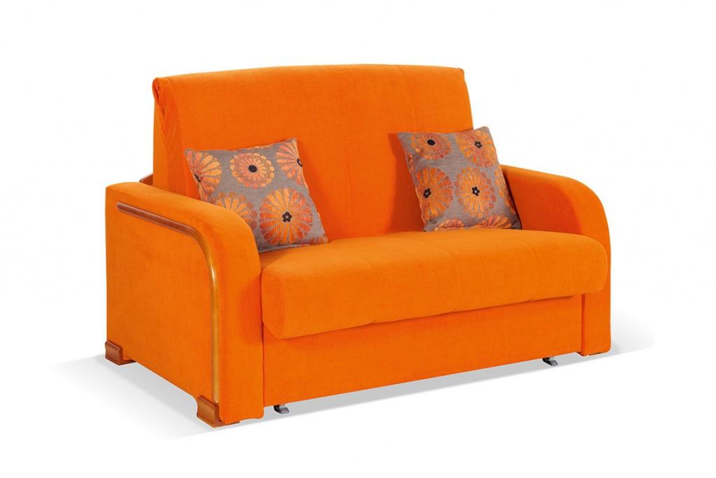 Sofka Tuli E. Jak pomarańczowo. Każda kolejna sofka ma ten sam system otwierania. Wysuwamy część siedziskową do przodu i pod siedziskiem pojawia nam się skrzynia na pościel. Cała skrzynia jest jak zawsze ze sklejki i drewna bukowego. W związku z systemem rozkładania do spania mamy taki układ. Od brzegu do brzegu na szerokości sofy zainstalowana jest sprężyna falista a na niej położona jest pianka. Wyjeżdżą wszystko łatwo szybko i bez problemowo jak harmonijka. Spanie jest na wysokości siedziska. Bardzo szybki system rozkładania. Sofka Tuli E z firmy Unimebel jest chyba najbardziej bogatą wersją tych sofek. Na zewnętrznej stronie boków została zainstalowana ozdobna listew. po rozsunięciu sofy do spania tył sofki także został obłożony wkoło takimi podobnymi listwami. Dzięki temu otrzymujemy taką cenę. Jej tańsza wersja to Tuli H. Jak w każdej sofce tego typu szybkie rozkładanie i bez problemowe ponieważ wszystko jest z drewna i sklejki. Tutaj nie ma prawa coś się zepsuć. Tkaniny oczywiście do uzgodnienia. Zobacz pozostałe modele naszych sofek.