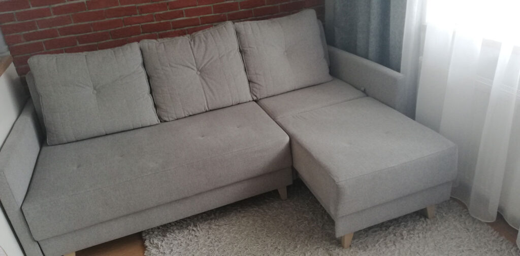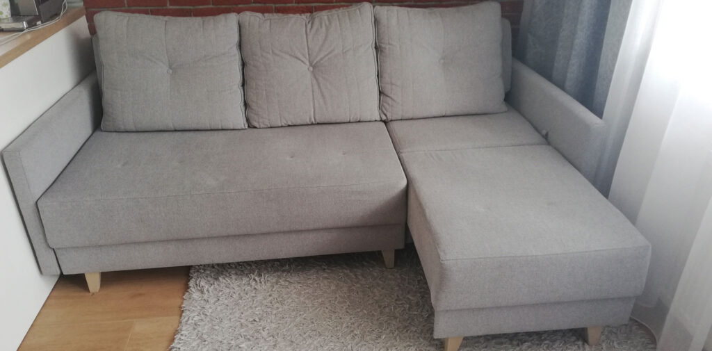 Sofo narożnik Figaro. Model narożnika, który może stać się sofą. Wystarczy krótszy bok schować podobnie jakbyśmy chcieli rozłożyć spanie i mamy typową kanapę typu DL. Dzięki temu w nie za dużym mieszkaniu możemy mieć na początek narożnik z otomaną a za chwilę kanapę. Takie dwa w jednym. Po przyjściu z pracy chcąc sobie odpocząć wyciągamy krótszy bok i nasza sofa staje się narożnikiem. W ofercie występują cztery rodzaje boczków. Szeroki 26 cm z półką, rozłożysty 19 cm, prosty 14 cm, prosty wąski 7 cm. W zależności od wyboru boczków będziemy mieli różne wymiary narożnika. Możemy te boczki sobie zmiksować np ; jeden 26 cm a drugi 14 cm. Narożnik dzięki wąskim boczkom zajmuje tylko 2,14. Idealny do otwartych kuchni z jadalnią bo tył jest cały w tkaninie głównej. Można go także śmiało postawić na środku salonu jak wszystkie narożniki z firmy Unimebel. Posiada wysokie nóżki. Niestety kosztem pojemnika na pościel. Czasami to klientowi idealnie pasuje bo robot może wjechać i wyczyści pod meblem. Z drugiej strony klient powie ,że nie do końca bo zbiera się kurz. Ktoś inny ,że to lepiej bo jest cyrkulacja powietrza gdy ma podgrzewaną podłogę. Nie ma złotego środka i nie jesteśmy w stanie wszystkich zadowolić. Mebel już taki jest i tego nie zmienimy. Zobacz pozostałe modele narożników ze spaniem codziennym.