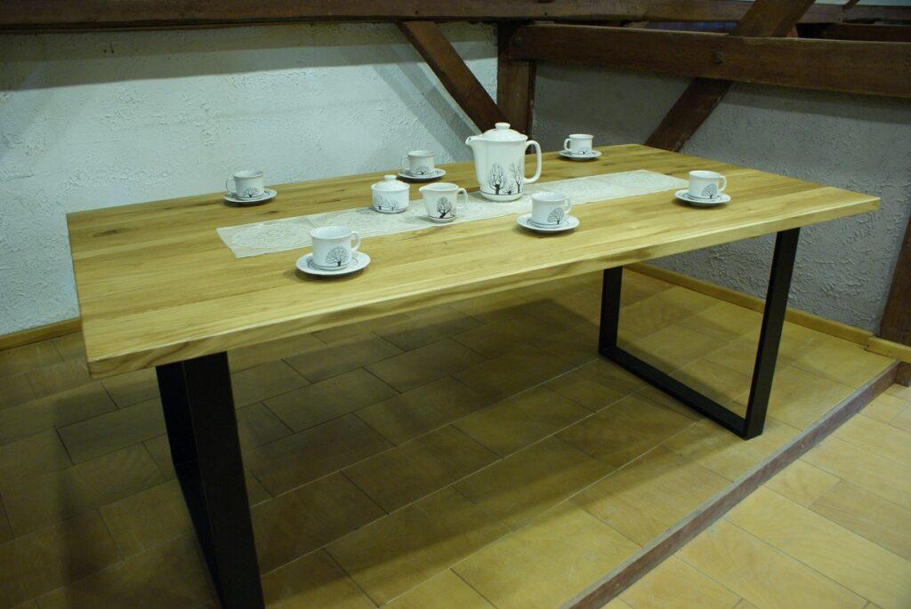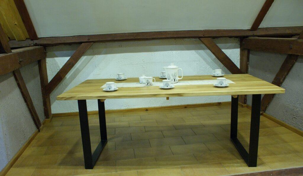 Stół nierozkładany z elementami metalowymi