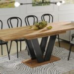 Stół Lara. Kolejna odsłona ciekawego stołu z naszej kolekcji. Nogi od stołu ustawione są symetrycznie w kształcie litery V. Nogi są w wymiarze 14 /5 cm. Nie jest to pierwszy lepszy stół skoro przy opcji stołu złożonego w wymiarze 130 i dwiema wkładkami waży 70 kg. Lekki do wnoszenia to on nie będzie. Wszystkie stoły z tej kolekcji przyjeżdżają do Państwa w paczkach do złożenia. Na szczęście jest to polski producent , który produkuje swoje towary od 20 lat i nie było jeszcze opcji aby zabrakło jakiegoś elementu do stołu. Jak widać na załączonym zdjęciu nie ma żadnych przeciwwskazań aby do takiej formy stołu dobrać bardzo lekkie krzesła. Może to być model A-18  czy bardziej nowoczesna forma A-0336. A jak takie krzesła to tylko z firmy Fameg naszego dostawcy nietuzinkowych krzeseł z drewna bukowego. Niektóre ich modele, które są cały czas  od 1859 roku. Model A-14.