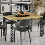 Stół Matio. Nogi od tego stołu ażurowe jak przy stole Ewerset. Dzięki temu rozwiązaniu stół nabiera  jeszcze bardziej lekkiej formy. Jak widać na załączonym zdjęciu. Jeżeli myślą Państwo o takim fasonie krzeseł jak Mediolan lub w podobnym stylu to tylko takie formy stołów z tej zakładki pozostają do wyboru. Ich konstrukcja pozwala bez problemu aby wysokie krzesła a w sumie bardziej ich podłokietniki   zmieściły się pod blatem. Do wyboru pozostają jeszcze stoły typowo loftowe robione pod zamówienie klienta z naszej oferty. Dzięki takim rozwiązaniom możemy wybrać ciekawe fasony krzeseł z podłokietnikami. Stół dostępny jest w 5 formach różnych wymiarów blatu oraz